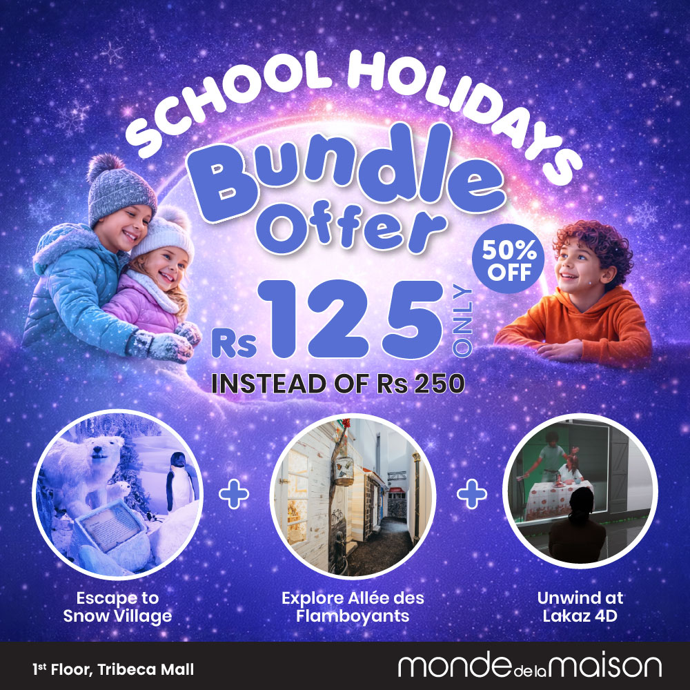 Continue to Lakaz 4D, where immersive video mapping delivers surprising sensations, and experience the Snow Zone, a magical space filled with snow.