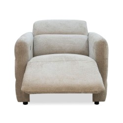 The Thea is a plump, supportive and generously proportioned recliner chair, ideal for those who don't compromise on comfort. Smart and inviting from every angle. This recliner offers a cozy spot for relaxation with no-sag spring on seat and a soft beige upholstered fabric. The adjustable footrest and rocking function add an extra layer of relaxation, making it just right for kicking back with a good book or your favorite show. his sofa features minimal detailing and a reclining mechanism for ultimate comfort for your head and footrest.