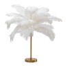 This LED table lamp is designed for romantics and dreamers. The lampshade made of real ostrich feathers gently moves around the bulb, the light of which is playfully refracted by the feathers. If you feel like going on holiday, you might even recognise a palm tree in the designer lamp. This gem made of brass-coated metal and feathers will look really good next to your sofa or on your bedside table.