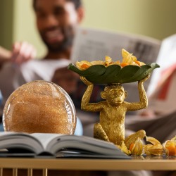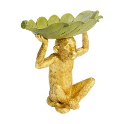 This radiantly beautiful helper has everything under control: leave keys, rings or the snacks for movie night to him and the friendly monkey will keep everything in order. The sculpture is detailed and lovingly painted by hand. With its fur in gold and the bowl in green, it brings that jungle feeling into the living room, the bedroom, the hallway or the home office.