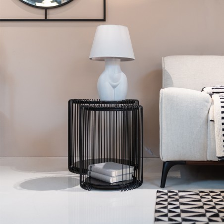 Touching is encouraged - this original lamp in the shape of a sculpture tempts you to touch it, it is so round and harmoniously shaped. The table lamp makes an impression with its all-white appearance. The sculptural base in the shape of a shapely torso adds an artistic touch. This lamp will add fun and individuality to any living space.